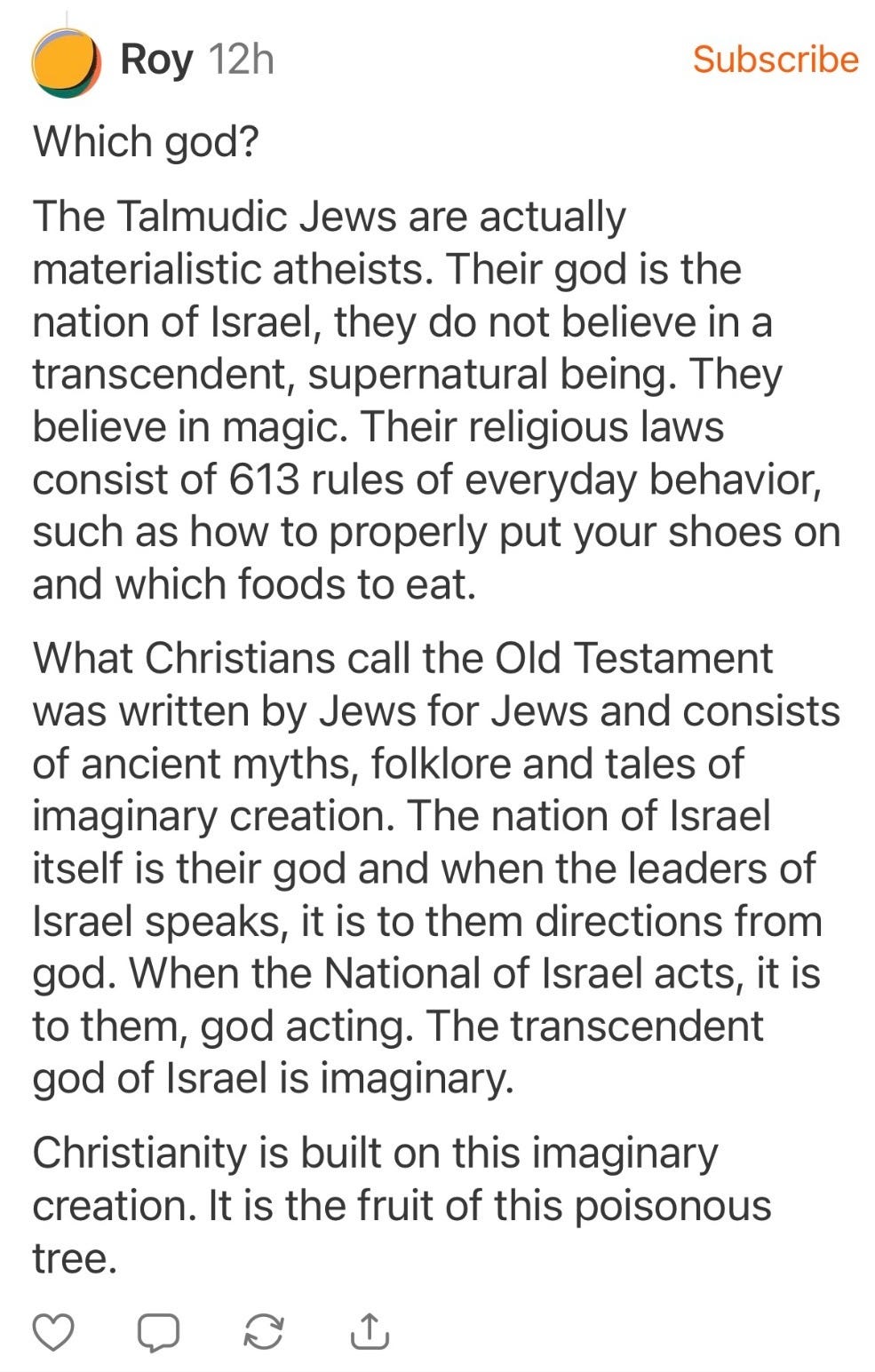 So why are Zionists so worried about anything that challenges the legitimacy of Israel? It’s a phenomenon I’ve been trying to understand for years — this absolute, unbreakable obsession with the state. And it finally clicked for me a few weeks ago, after everything I’ve read and everything I’ve watched unfold online: Zionists don’t truly believe in God as a mythical being, or a powerful spiritual force. They believe in Israel. Israel IS their god.